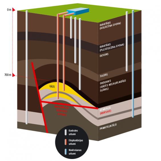 Latvia has a unique, concentrated geological structure, which allows to create natural gas storage at least in 11 locations, with a total capacity of up to 50 billion cubic meters. That is about 10% of the annual consumption of the European Union and about the same as the total storage capacity across the European Union. Storage is possible because deep in the Latvian soil there is a layer of porous sandstone, which has good storage properties and which is coated with gas-tight rock layers, also these geological structures are placed at optimal level of 700-800 meters deep, allowing safe and cost-efficient storage of gas.
